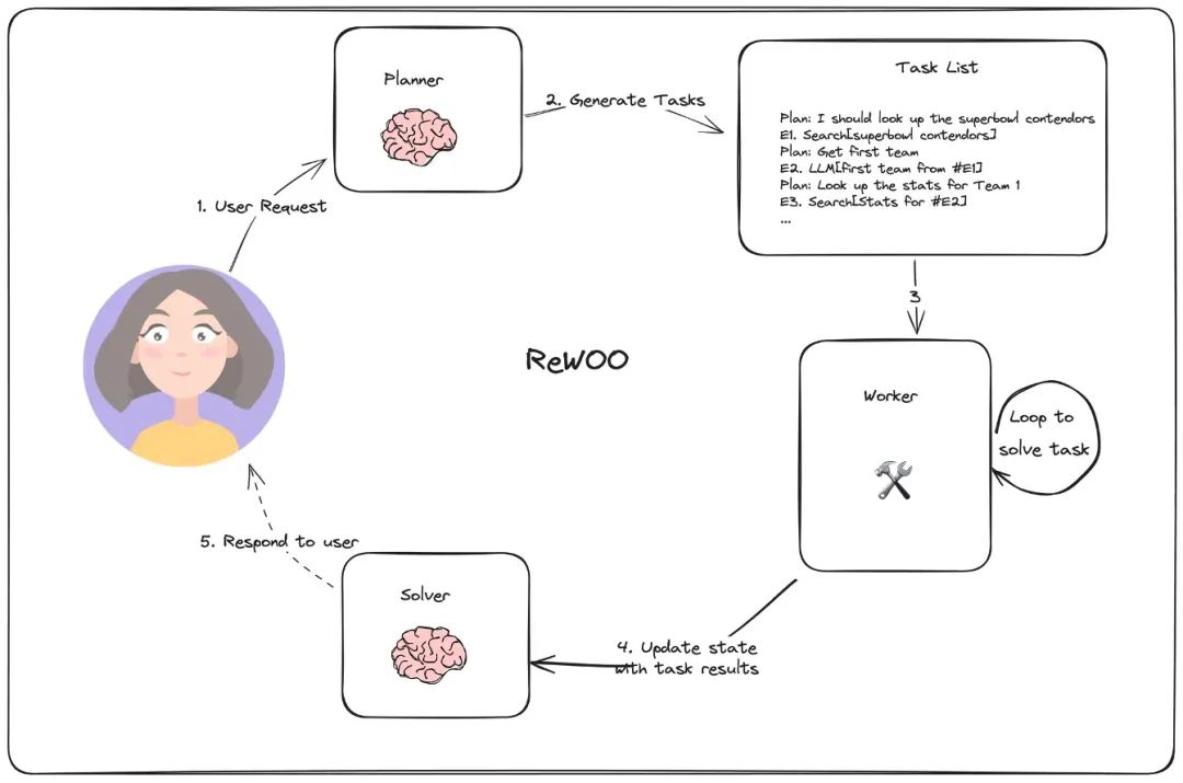 (图源: ReWOO: Decoupling Reasoning from Observations for Efficient Augmented Language Models)
