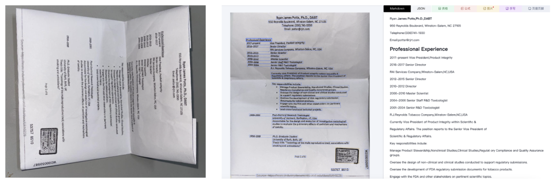 - 阅读顺序还原准:理解、还原文档结构和元素排列,确保阅读顺序的准确性,支持多栏布局的论文、年报、业务报告等。