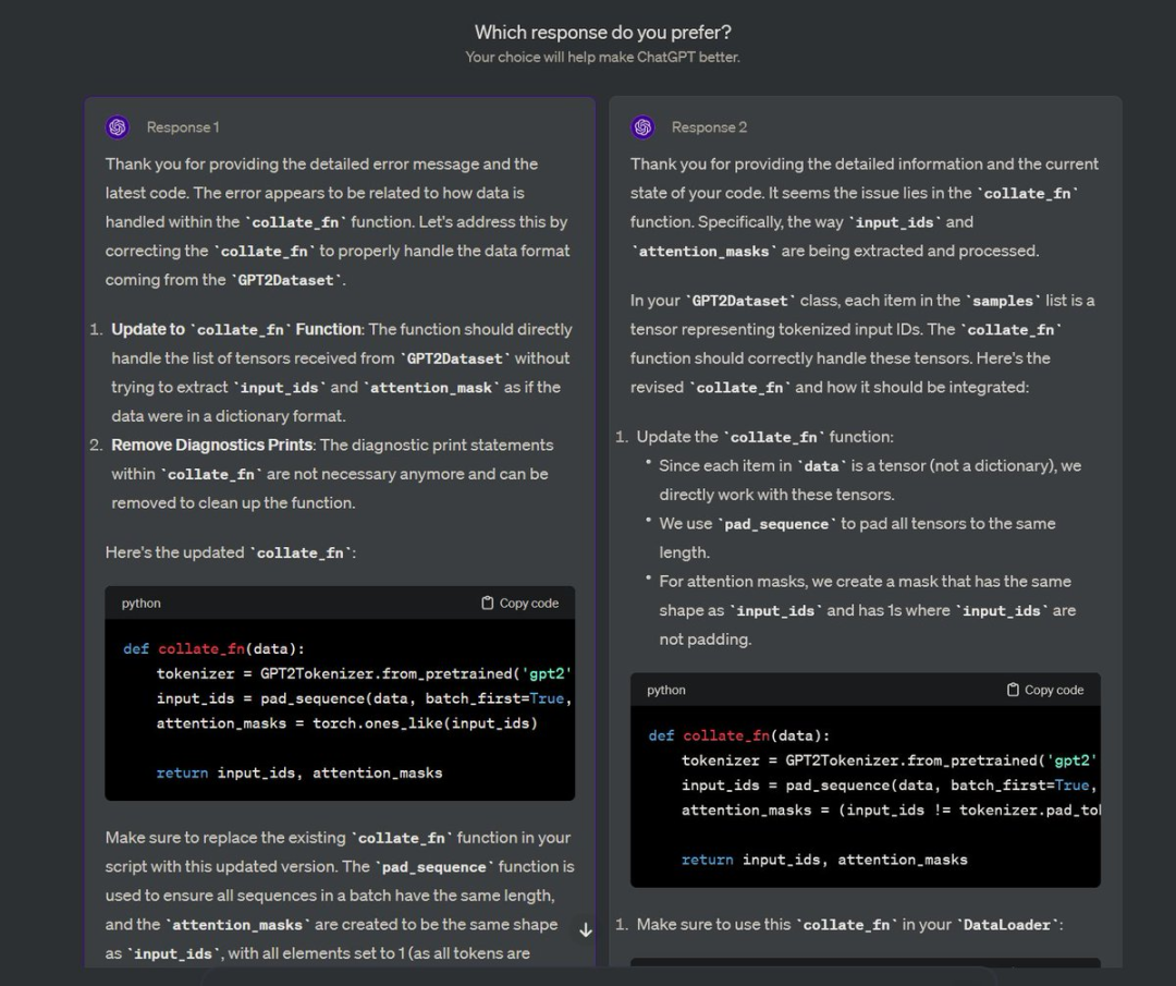 你一定在 ChatGPT 上见过这个界面,它会问:你更喜欢哪个回答?