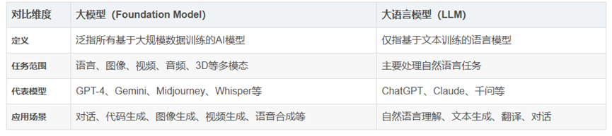 最后,做一个大模型和大语言模型之间的对比