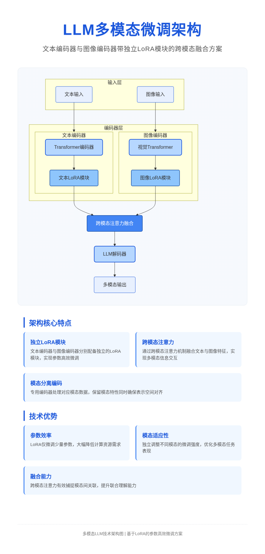 多模态微调核心矛盾:在保持预训练模型基础能力的同时,仅通过少量参数更新实现跨模态特征的语义对齐,需平衡模态特异性与融合通用性。