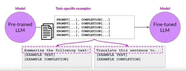 此图表示针对特定任务示例进行微调的过程。这种方法允许开发人员指定所需的输出、鼓励某些行为,或更好地控制模型的响应。