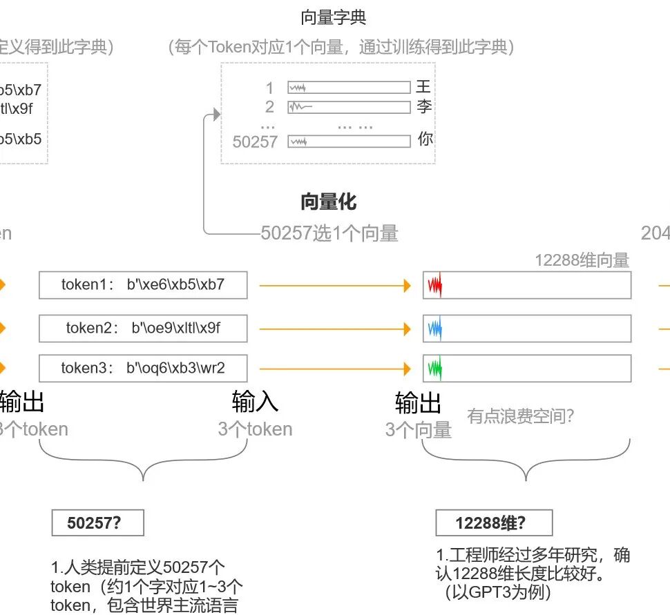 我们从这张图中可以进一步看出,计算机科学家编辑的字典有50257个token,我们输入的内容对比字典进行拆分,然后对应相应的token,每个token有对应的编码。