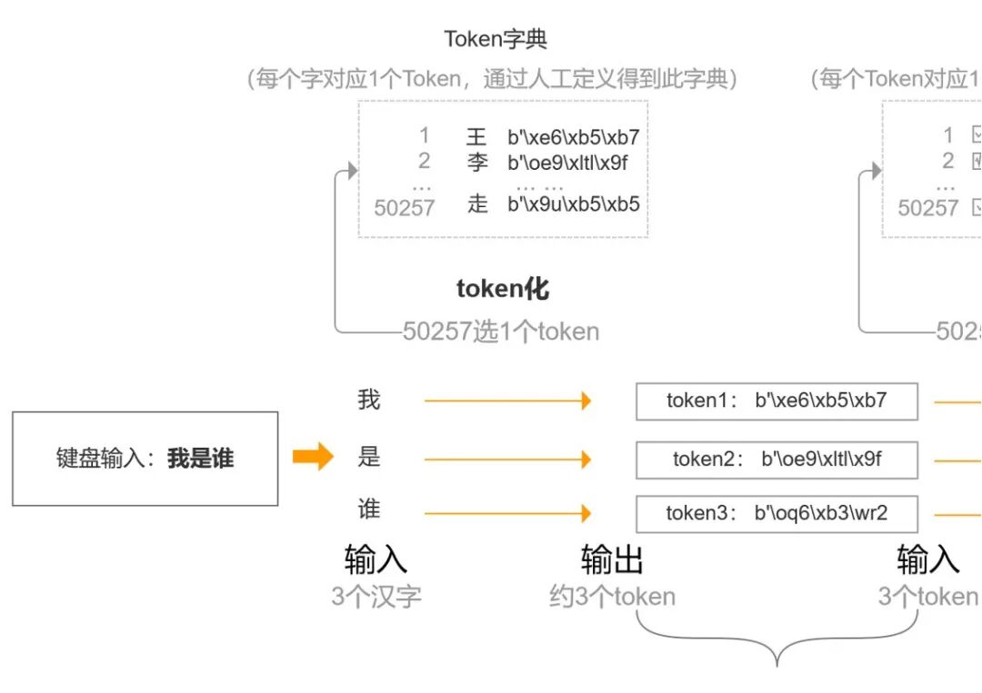 当我们向大模型输入“我是谁”之后,会先把这几个字转化成为token,这个token可以接单理解为字典中的字及字代表的含义,至于怎么输入的内容要怎么拆,计算机科学家有一个共识,就是相当于出了一本字典。