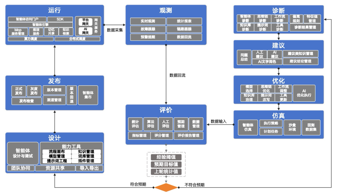 有目标、有能力、有体系,让AI智能体自己对自己进行效果优化升级。在自动化条件还不够成熟的环节,交给人工协同。跟随技术更新,逐步减少人工参与。