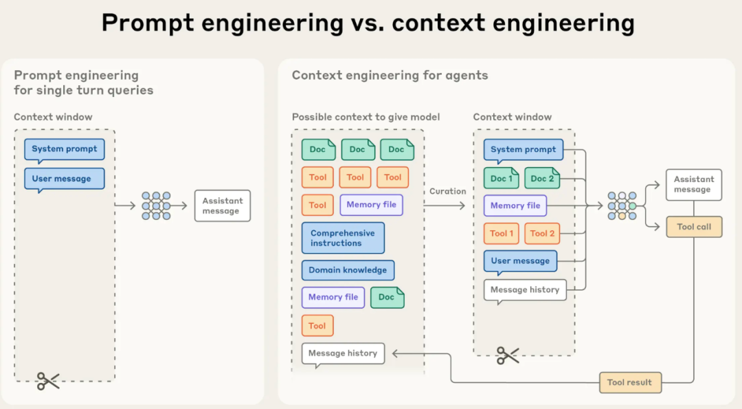 Anthropic给出的定义是:为LLM在推理过程中,策划和维护最优信息集合的一系列策略,简单说: