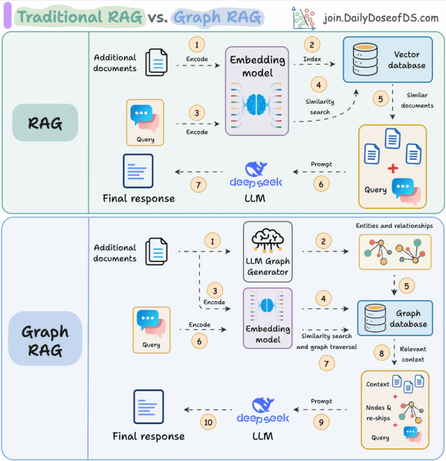 图 RAG 通过图结构使其更加健壮,这有助于它构建长距离依赖关系,而不是 RAG 中发生的局部文本分组。