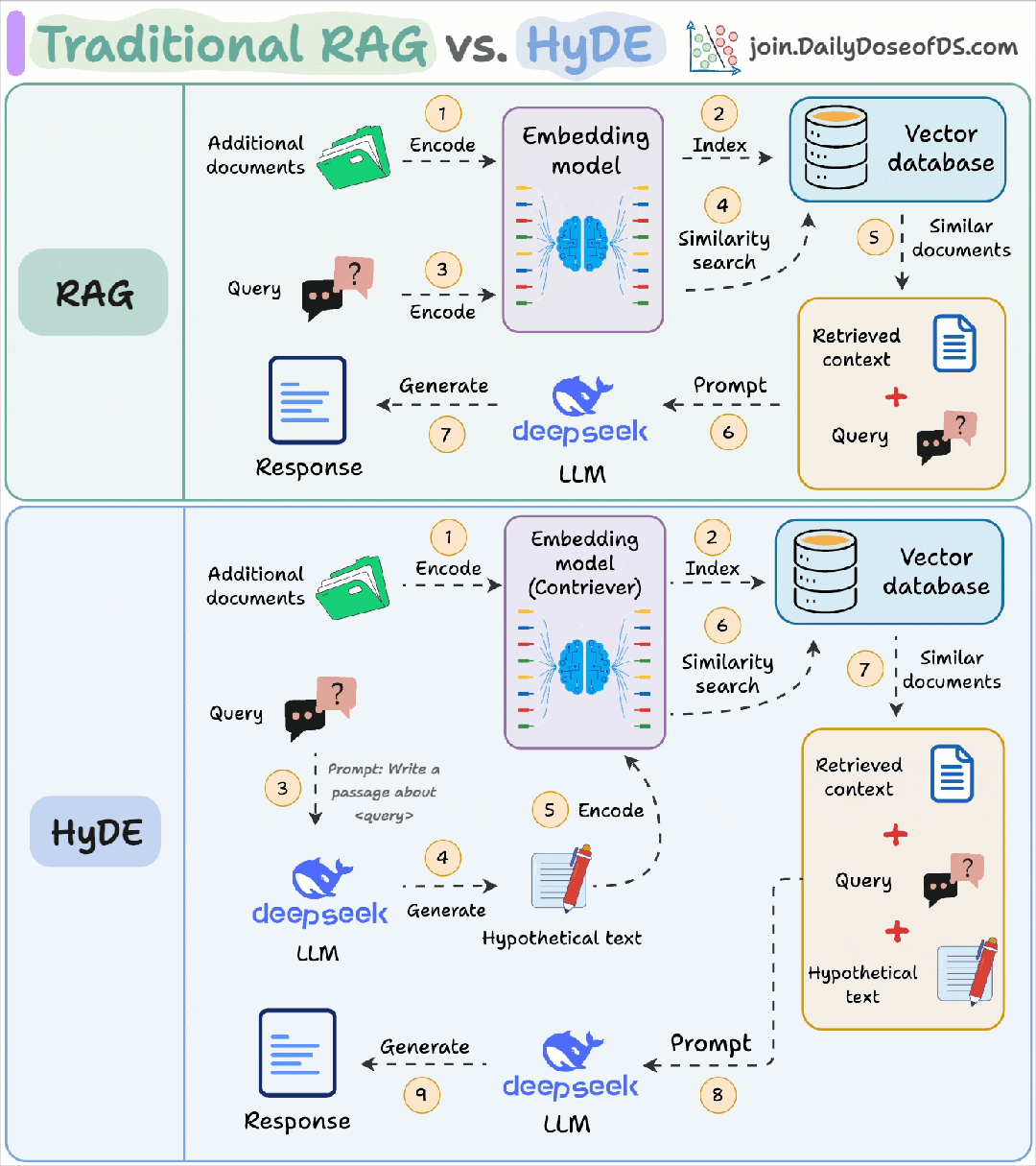 HyDE (Hypothetical Document Embeddings)假设文档嵌入技术通过首先生成一个假设性的回答来解决这个问题。