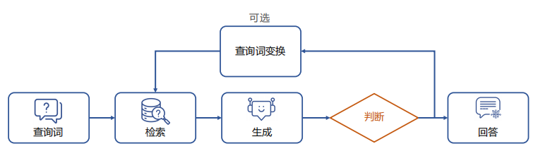 在循环模式中,判断模块(Judge Module) 起到了关键作用。它用于决定系统是否需要返回到前一个模块,或者是否继续向下执行。例如,在每一次生成或检索之后,判断模块可以根据当前的输出结果、历史数据、查询和检索到的文档来决定是否继续迭代。如果决定返回,流程就会进行循环;如果决定不返回,流程则继续向前执行。这样,系统能够根据当前任务的情况动态调整整个流程。