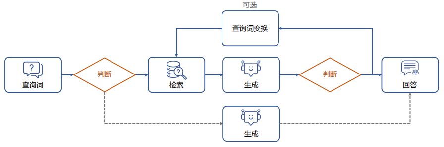 条件模式 是一种灵活的 RAG流模式,其核心特点是在不同的条件下选择不同的工作流,以便针对特定场景进行优化。这种模式的关键在于一个 路由模块(Routing Module),该模块根据输入问题的特性动态选择接下来的处理流程,如下图所示。
