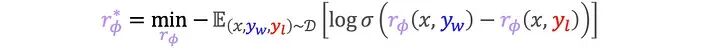 使用这个损失函数,我们可以通过以下目标用偏好数据集训练奖励模型: