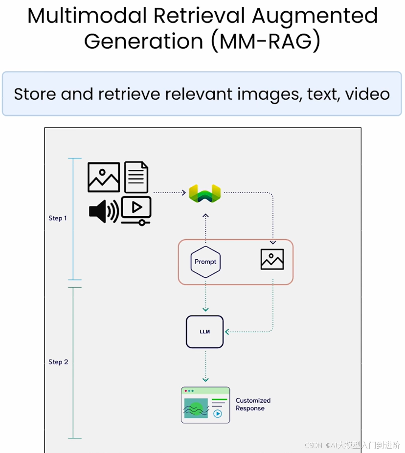 多模态 RAG 的核心思想是将传统 RAG 的文本检索和生成能力扩展到多模态领域: