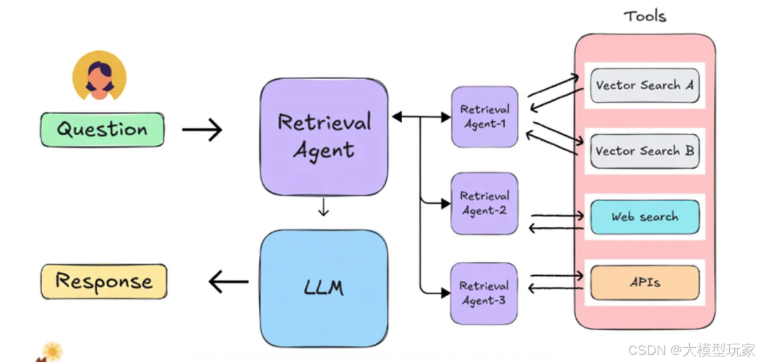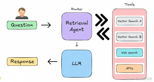 我们将这些智能体称为检索智能体(Retrieval Agents)。这些智能体专注于从外部数据中获取信息并进行推理。