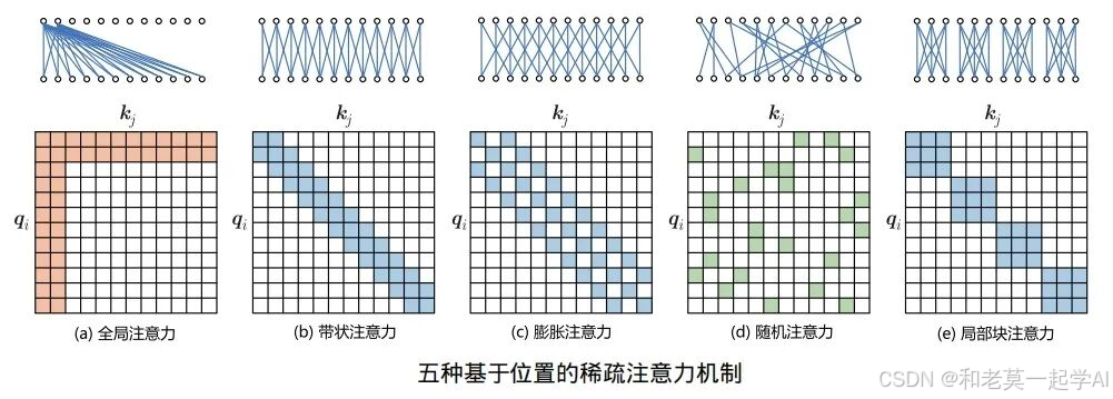 在实际应用中,稀疏注意力机制往往采用上述几种方式的组合。例如: