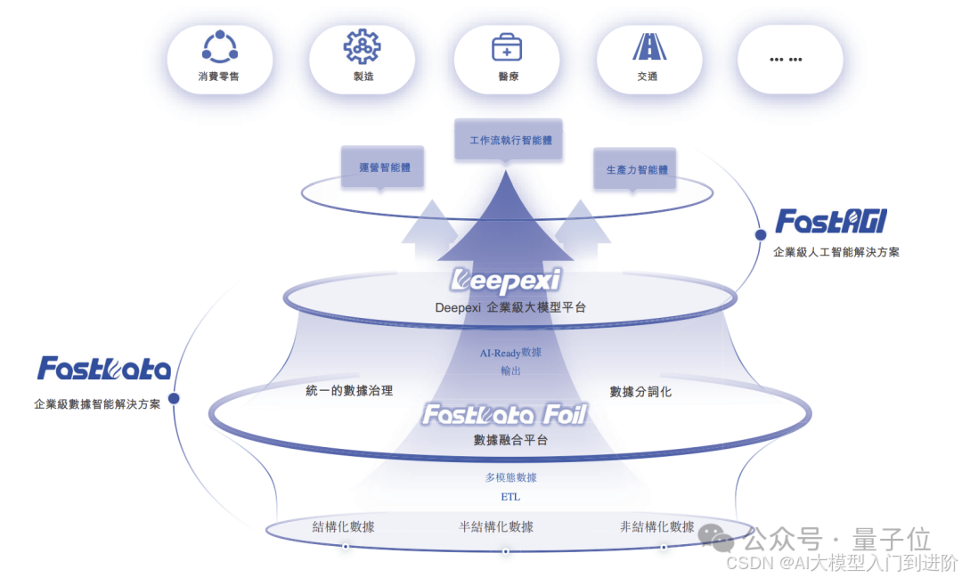 FastData Foil提供AI-Ready的数据基础,并基于FastData实现对数据全生命周期治理。Deepexi实现企业专属大模型的构建,并基于FastAGI支持Agentic AI应用的快速构建和部署。