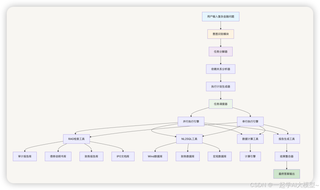 - 功能:将复杂金融问题分解为可执行的子任务