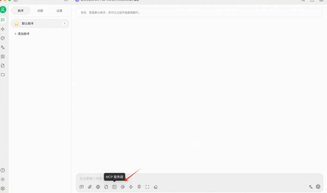 同步MCP服务后,可以在Cherry Studio客户端AI助手消息输入框看到新增的“MCP服务器”图标。