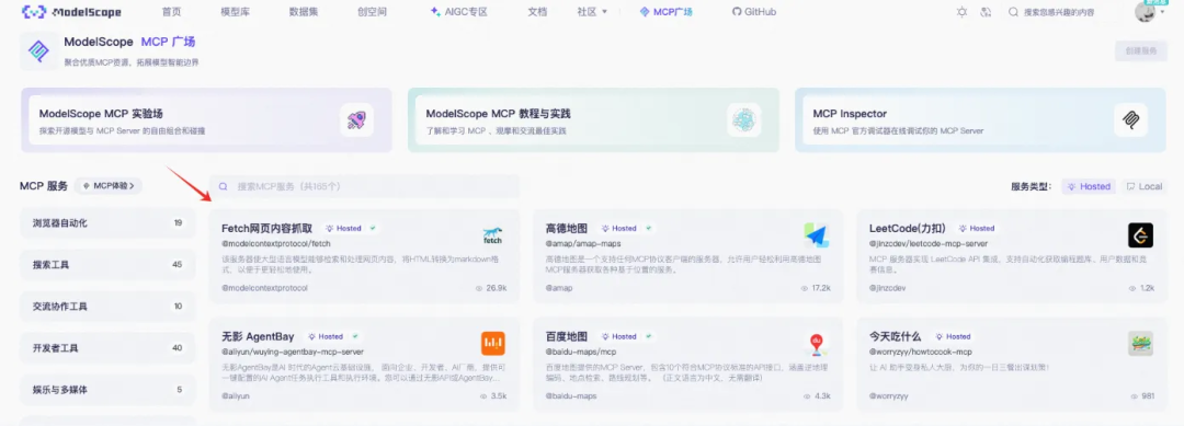 ModelScope通过 MCP广场 为广大开发者提供了海量的MCP服务。可以直接在ModelScope平台上实现托管,供包括Cherry-Studio在内的不同客户端直接集成使用。