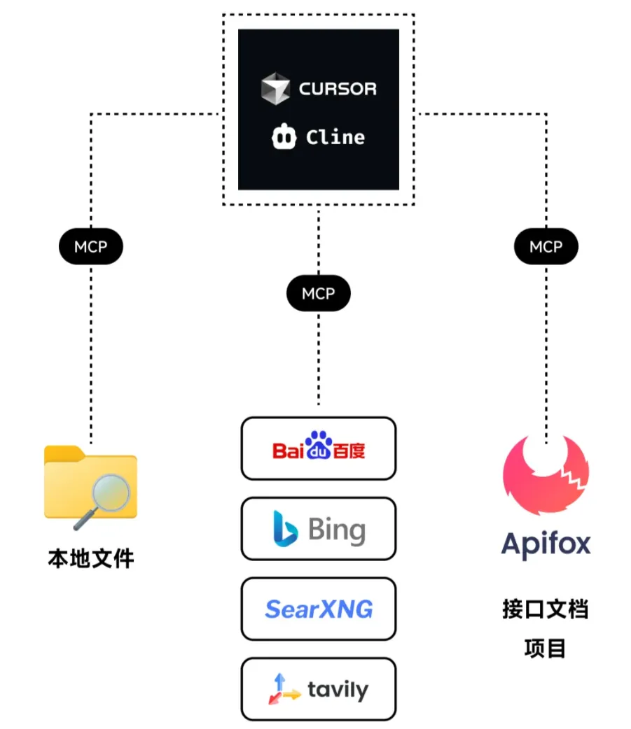 | Local Data Sources | MCP 服务器可以安全访问的计算机文件、数据库和服务 |