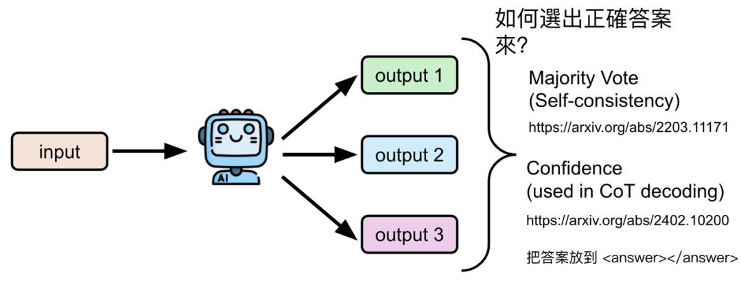 - 多次尝试 + 多数投票 (Majority Vote):让模型多次解答,选择出现频率最高的答案。