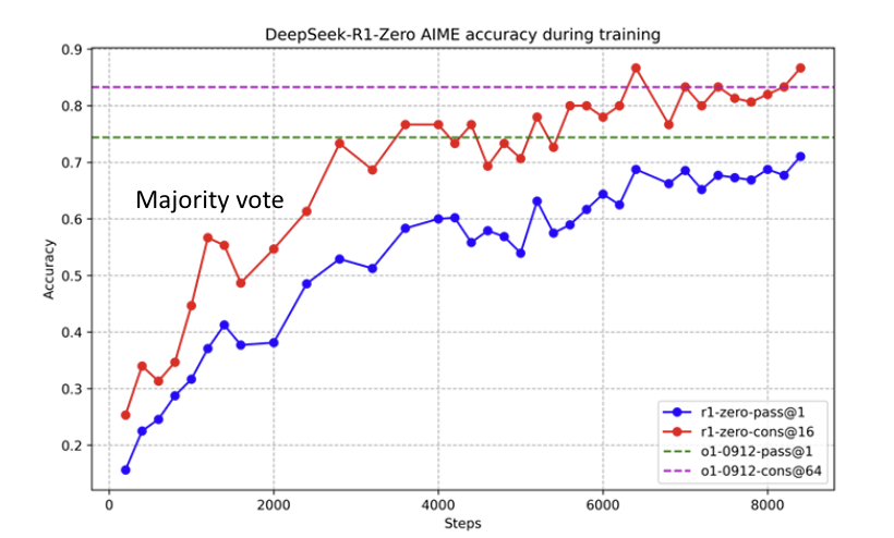 通过RL,模型会自己探索出那些更容易导向正确答案的推理模式。