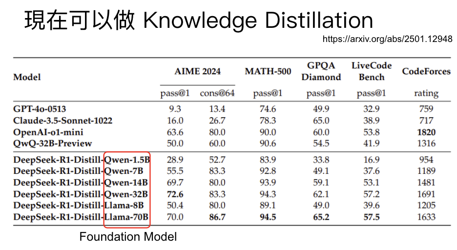 知识蒸馏(Knowledge Distillation): 一个更便捷的方法是,直接用一个已经具备深度思考能力的模型(如DeepSeek-R1)作为老师,生成大量的推理数据,然后让我们的目标模型去模仿学习。DeepSeek的论文也证明了这种方法的有效性,能将R1的推理能力蒸馏到更小的模型上。