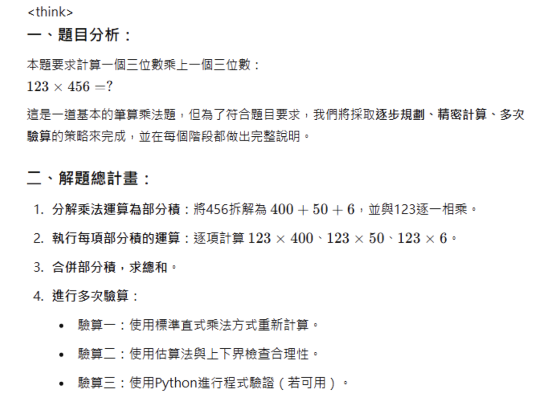 实例:DeepSeek-R1 解答 123 × 456