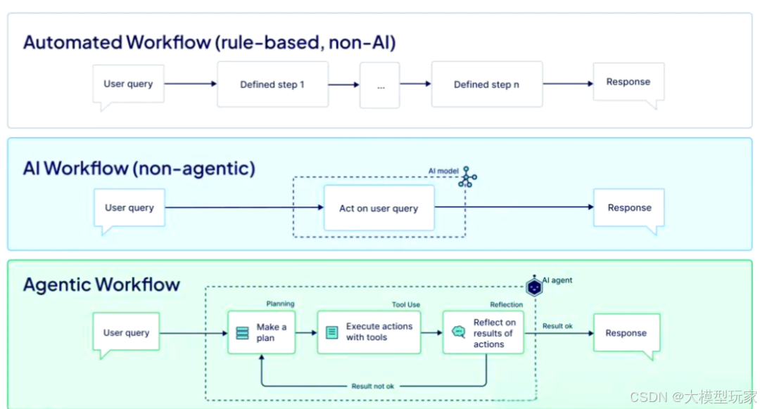 | 代表产品 | ChatGPT | AutoGPT、扣子Bot | 智能IVR、教学助教 |