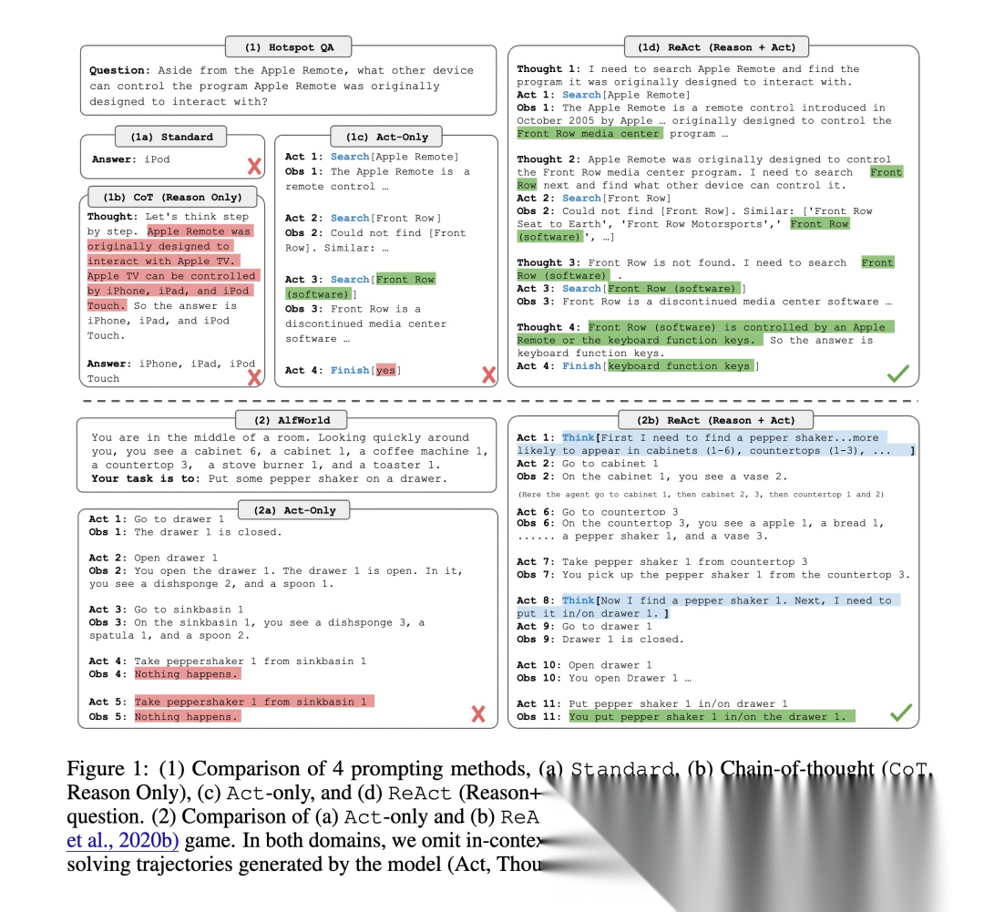 这样,一个完整的ReAct流程就能实现模型原生推理能力与外部工具调用的结合,使其可以动态获取外部信息,在观察与思考的多轮交替中逐步逼近任务目标。ReAct在处理知识密集型任务时,往往比不具备交互能力的模型表现更为出色。