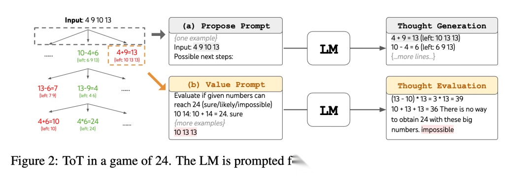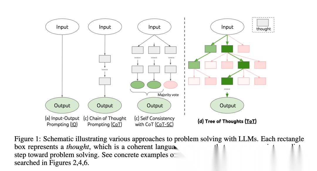2023年5月,思维树(ToT,Tree Of Thoughts)[11]被Shunyu Yao等人提出来了,基于原来的思维链(CoT)进行了总结和提升,使得模型介入中间步骤来解决问题的一个过程。