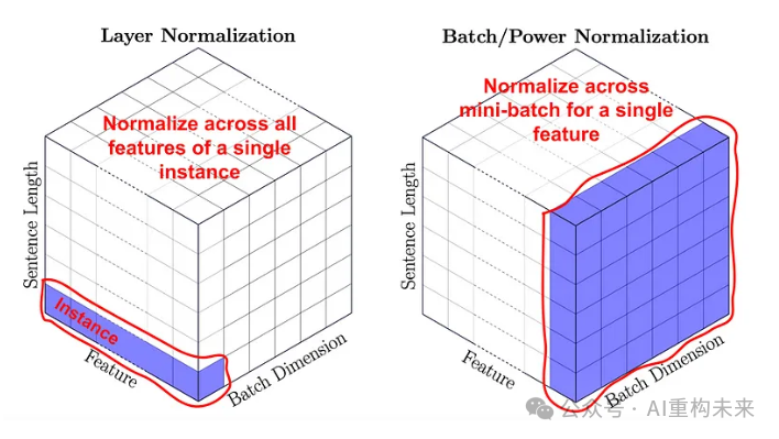 层归一化(Layer Normalization)和批量归一化(Batch Normalization) 为学习过程带来了稳定性。层归一化确保每个神经元的输出保持平衡,就像在群组对话中调整音量以保持清晰度一样。批量归一化则更进一步,它平衡了多个训练样本的输入,加快了学习速度,并使模型对噪声数据更具弹性。即使复杂度增加,它们也能使训练过程保持流畅和一致。层归一化通常用于 NLP 模型,其中在单个实例中独立计算每个实例的平均值和标准差。批量规范化通常用于计算机视觉模型。它计算每个特征(嵌入维度)的批次平均值和标准差。