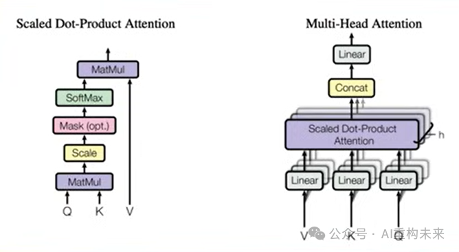 Transformer并不局限于单一的注意力机制。它们使用多头注意力机制(Multi-head Attention),并行运行多个注意力操作。每个“头”关注句子中的不同关系。例如,一个“头”可能追踪主谓一致,而另一个“头”则将代词与其先行词联系起来。这些“头”共同提供了对语境更丰富的理解。