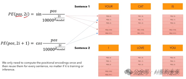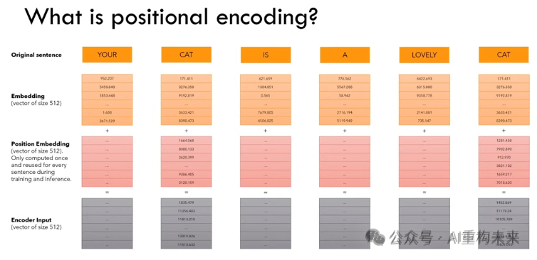 2)位置编码(Positional Encoding) :给文字注入“时间感”:如果Transformer擅长关注语境,它们仍然面临一个根本挑战:理解词序。与人类不同,这些模型并非天生就知道词序决定意义。以“猫追老鼠”和“老鼠追猫”这两个句子为例。这两个词是相同的,但意义却完全根据它们的顺序发生了变化。那么,Transformer是如何学习语言节奏的呢?