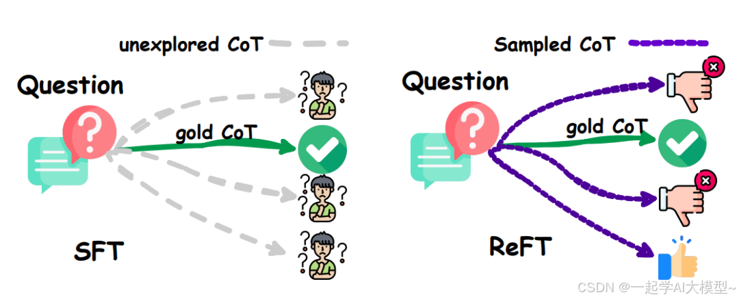 (这里可以参考 24 年初的一篇论文:REFT: Reasoning with REinforced Fine-Tuning)