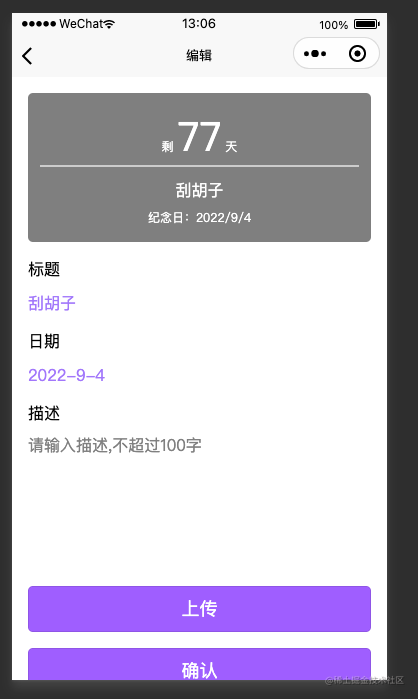 1.被产品(女朋友)要求做一个小程序,直接仿照记忆日app的功能就行了。