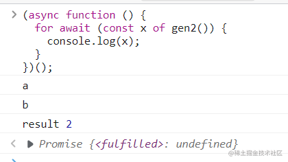 (async function () {for await (const x of gen2()) {console.log(x);}