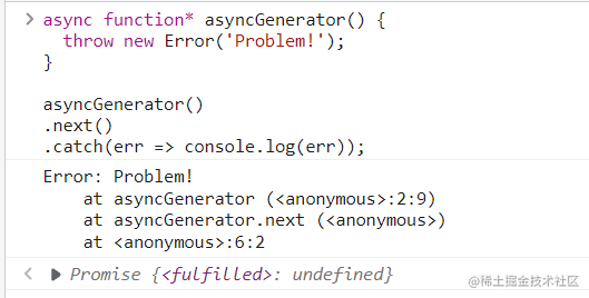 async function* asyncGenerator() {throw new Error('Problem!');