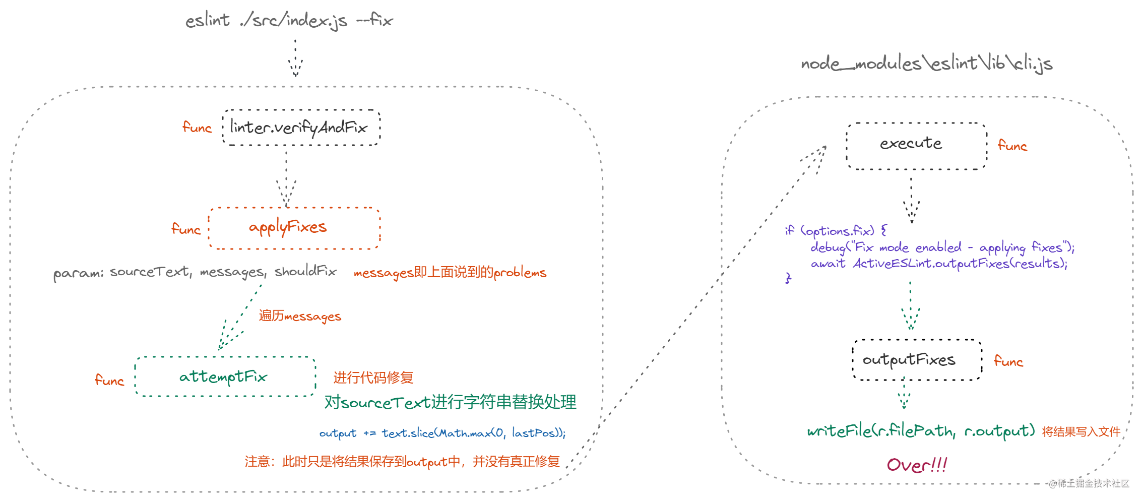 在上一步拿到problems信息的基础上,进一步分析,发现调用了applyFixes函数,即修复过程,具体过程见下图: