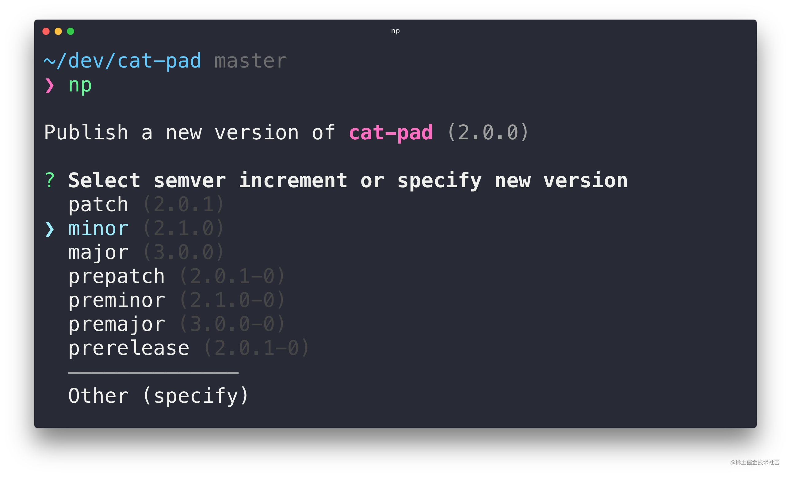 - np 是包发布流程的辅助工具,它提供了版本设置和各种细致的检查,将发布流程中的各种细节自动化,是一个非常实用的工具。