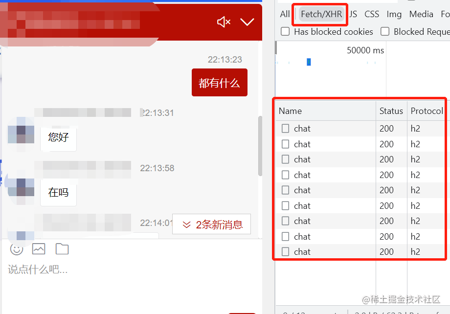 打开网页上随处可见的客服聊天窗口,结合上述的介绍,也许你就会认为是通过 WebSocket 实现的,但其实不然,例如: