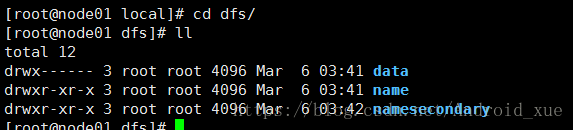 启动后dfs目录下多了两个文件夹data和namesecondary