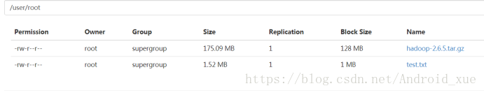 可以看到/user/root目录了。不过里面还没有东西。这个时候就可以上传文件了。