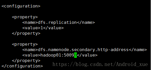 配置说明:运行HDFS需要将一台机器指定为namenode。属性fs.defaultFS描述HDFS文件系统的URI,其中主机是namenode的主机名(我这里用是hadoop01),或者IP地址,端口号是namenode监听RPC的端口。如果没有指定,那么默认端口是8020.