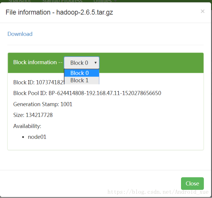 文件大小为175.09M,默认的分割大小为128M,所以分割为两块。