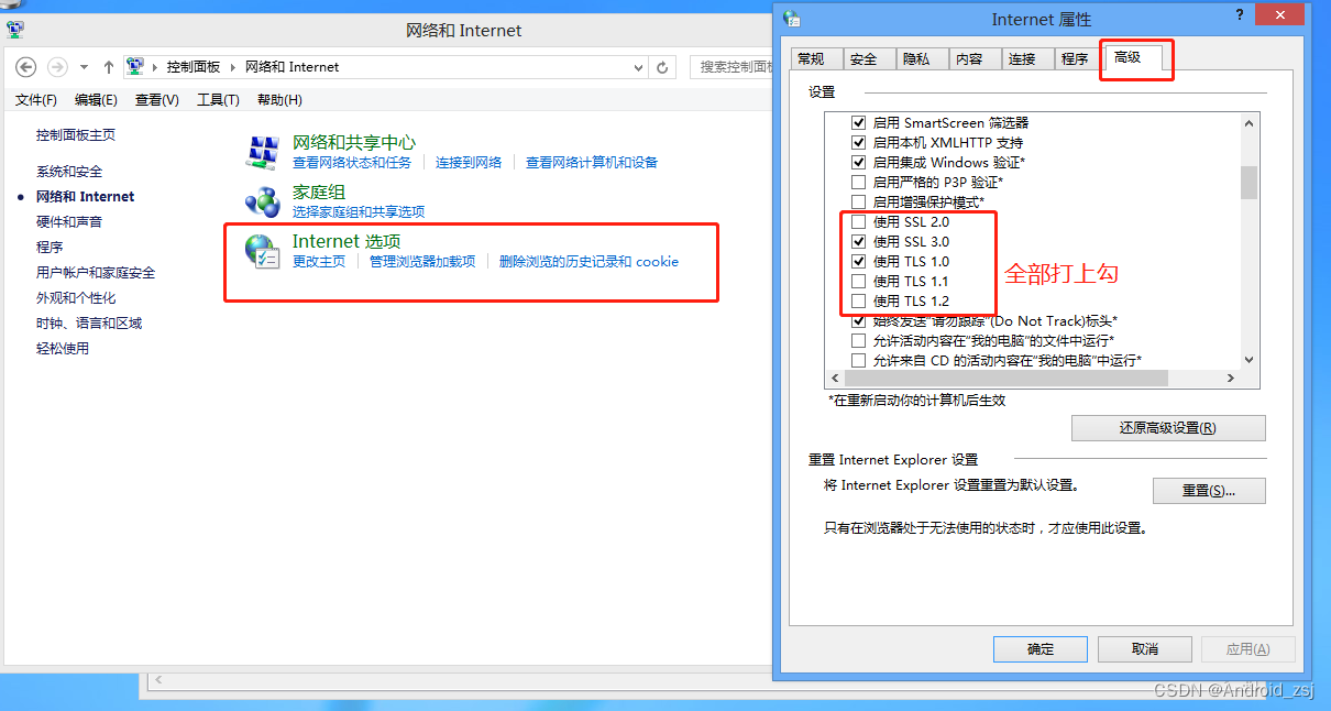 ③找到“高级”选项,圈上的全部打勾,保存即可。再试一遍就登上了~~~~~~~~