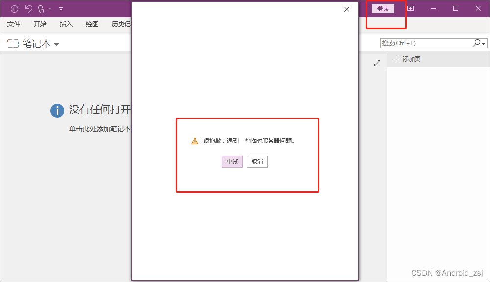 问题如下图:我们在登录OneNote时显示"很抱歉,遇到一些临时服务器问题":