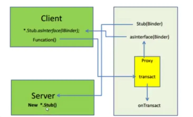binder机制是android端进程间通信的基石,采用aidl的ipc通信方式,我们可以利用它来定义两个进程相互通信的接口。他是基于Service实现的一种线程间通信机制。它的本质是C/S架构的,需要一个服务器端,一个客户端。 AIDL通信方式里面有四个对象,一个是IInterface,专门用来负责接口的调度,Stub用来负责通信的响应和发送给service端的数据,Proxy负责两个进程通信的包装,算是间接调用Stub的包装类,service是服务端处理数据的关键类。用一张图来表示如下: