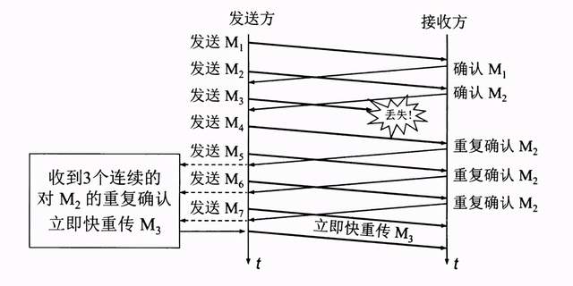 快重传算法是让发送方尽早知道发生了个别报文段的丢失。快重传算法要求接收方不要等待自己发送数据时才进行捎带确认,而是立即发送确认。也就是说,当出现丢包情况,接收方在接收新数据时会重复发送对丢失包的前一个报文段的确认号。发送方接收到三次确认号后,就判断该丢失报文段确实丢失,会立即进行重传(快重传)。