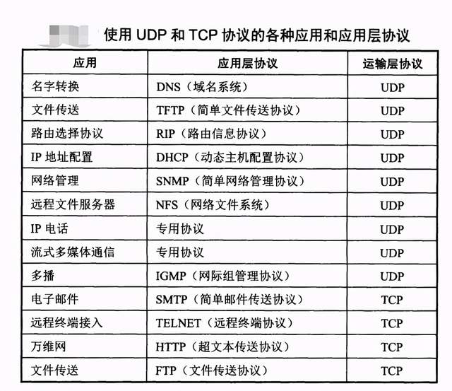 使用TCP协议有:FTP(文件传输协议)、Telnet(远程登录协议)、SMTP(简单邮件传输协议)、POP3(和SMTP相对,用于接收邮件)、HTTP协议等