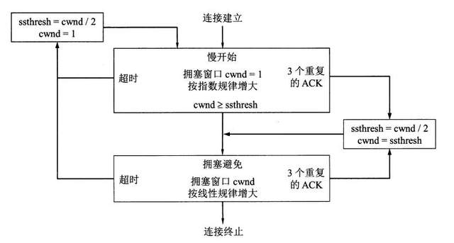 - 若SMSS>2190字节,则 cwnd=2 x SMSS字节,不得超过2个报文段。
